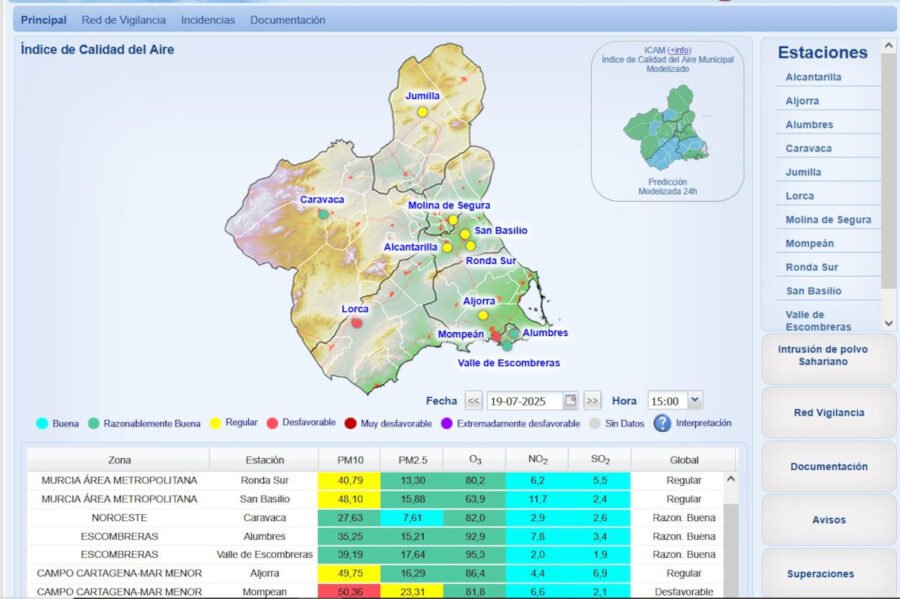 La Dirección General de Medio Ambiente de la Comunidad Autónoma de Murcia ha notificado al Ayuntamiento de Cartagena un episodio de contaminación este viernes 18 de julio, en el que se registró el Nivel 1 (Preventivo) para las partículas PM10 en las estaciones de medida de La Aljorra y Mompeán.