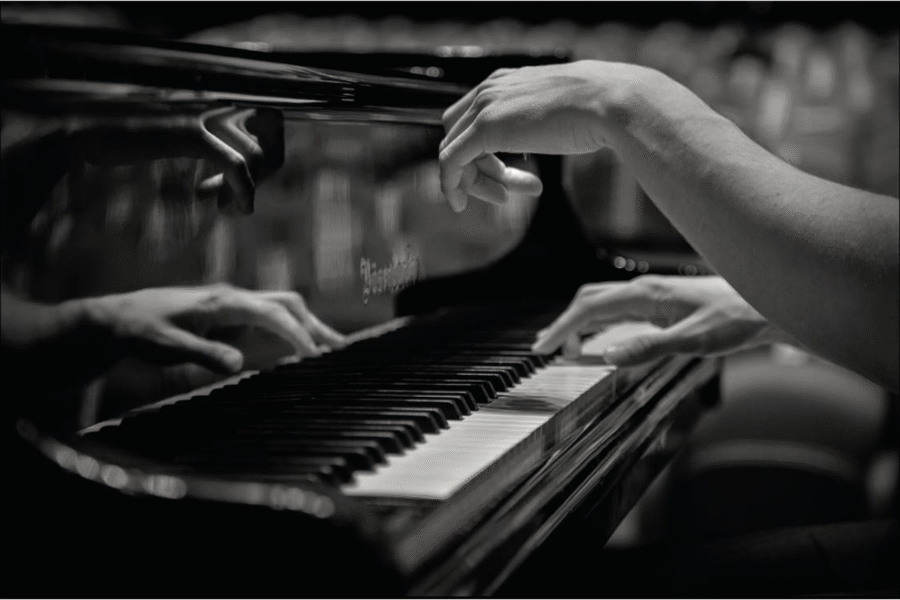 En la composición la simetría de la arquitectura, del teclado del piano o la disposición de los elementos en los encuadres; los reflejos de los arcos en el piano o la luz sobre las hojas de parra, generan unas obras poéticas, evocadoras, atemporales y llenas de emoción donde la ausencia de color permite al espectador sumergirse en la esencia del momento captado.