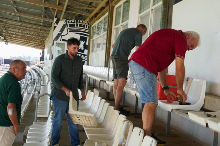 Los trabajos que lleva a cabo el Ayuntamiento de Cartagena también se han centrado en el graderío, donde se han reparado más de 70 butacas que se encontraban rotas tras el último partido. También se ha cubierto con pintura zonas de la fachada exterior que habían sido vandalizadas, y se han hecho reparaciones en la sala de prensa del estadio.