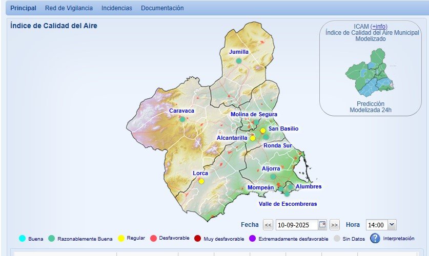 La Dirección General de Medio Ambiente de la Comunidad Autónoma de Murcia ha notificado al Ayuntamiento de Cartagena que ayer martes, 9 de septiembre, se ha registrado el Nivel 1 (Preventivo) para las partículas (pm10) en las estaciones de medida de La Aljorra y Mompeán, pertenecientes ambas, a la zona de calidad del aire Campo de Cartagena-Mar Menor, en la que se encuentra Cartagena.