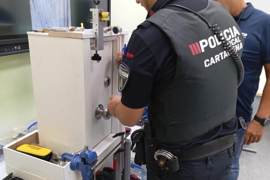 Policías Locales y Bomberos del Ayuntamiento de Cartagena están recibiendo una formación específica sobre actuación en cerrajería de emergencia.