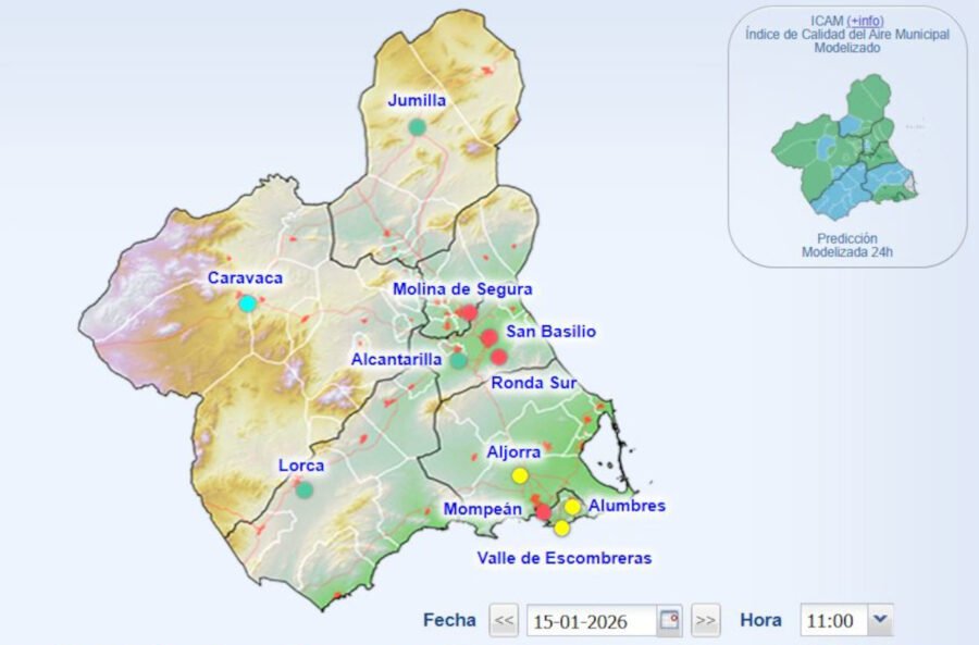 La Dirección General de Medio Ambiente de la Comunidad Autónoma de Murcia ha informado al Ayuntamiento de Cartagena que durante la jornada de este jueves 15 de enero se ha registrado la superación del Umbral de Información para las partículas PM10, entendido como promedio móvil 24h durante las últimas 3 horas consecutivas, en la estación de medida de Mompean.